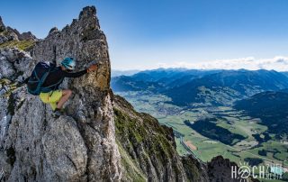 Climb&Fly: Die Grimming-Überschreitung (Ost-West) liegt als "letztes großes Abenteuer" neben der B320. Ein Grat, der weite und tiefe Blicke öffnet. Einsam, erlebnisreich, empfehlenswert.