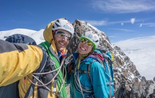 Wir haben es geschafft, Marlies durfte auf ihrem letzten Viertausender der Alpen stehen; wir sind erleichtert und super glücklich. Bis zum Happy End war es nämlich eine Riesen-Herausforderung. Der gesamte Brouillardgrat (Brouillard Intégrale) forderte uns einiges ab.